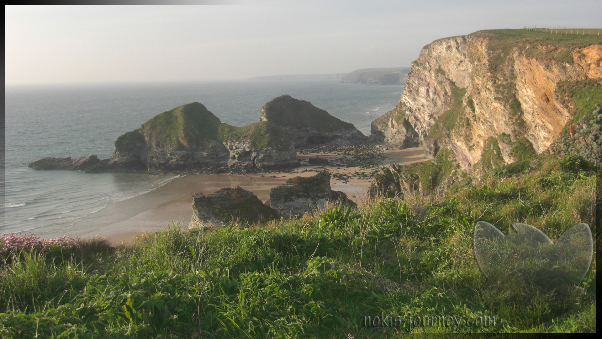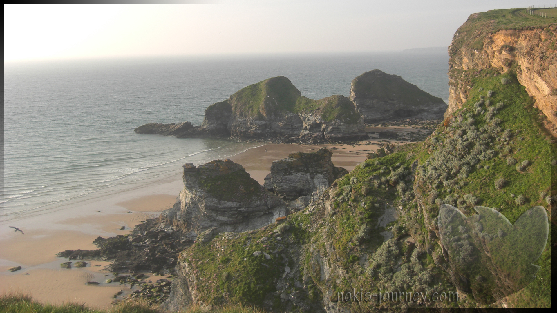 Auch an diesem Abend sind wir wieder ein Stück herumgelaufen, einfach ohne Plan, nur der Nase nach. Und was wir gefunden haben, war wirklich unglaublich: steile Klippen, das leise Rauschen des Meeres unter uns und ein Sonnenuntergang, der alles in warmes Gold tauchte. Die Luft war klar, die Farben wurden weicher, und mit jedem Schritt wirkte die Küste ein bisschen magischer. Dieses Trio – Klippen, Meeresrauschen und Abendlicht – war einfach perfekt, um den Tag ausklingen zu lassen. Wir fanden den Whipsiderry Beach in Newquay.